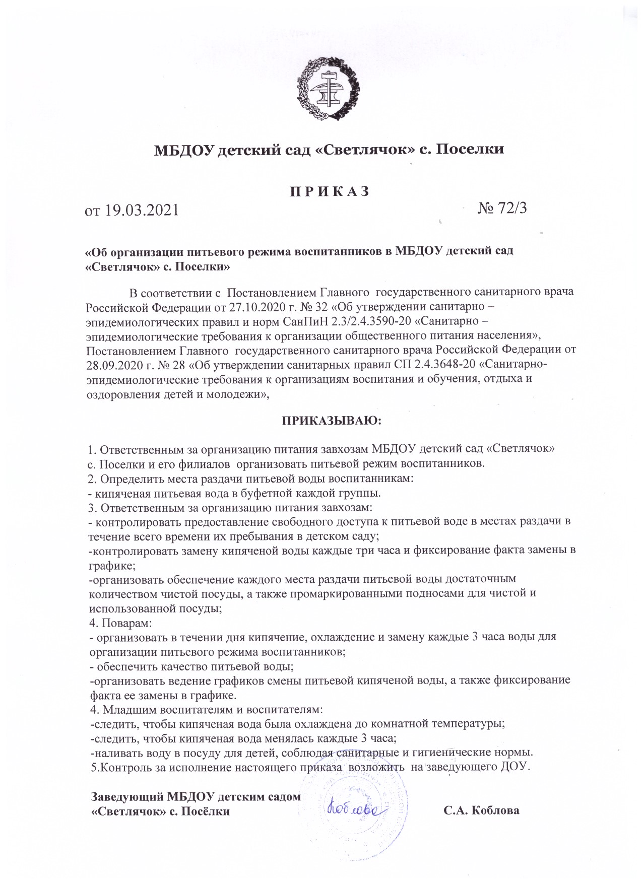 Приказ о изменеиях внутреннего распорядка воспитанников